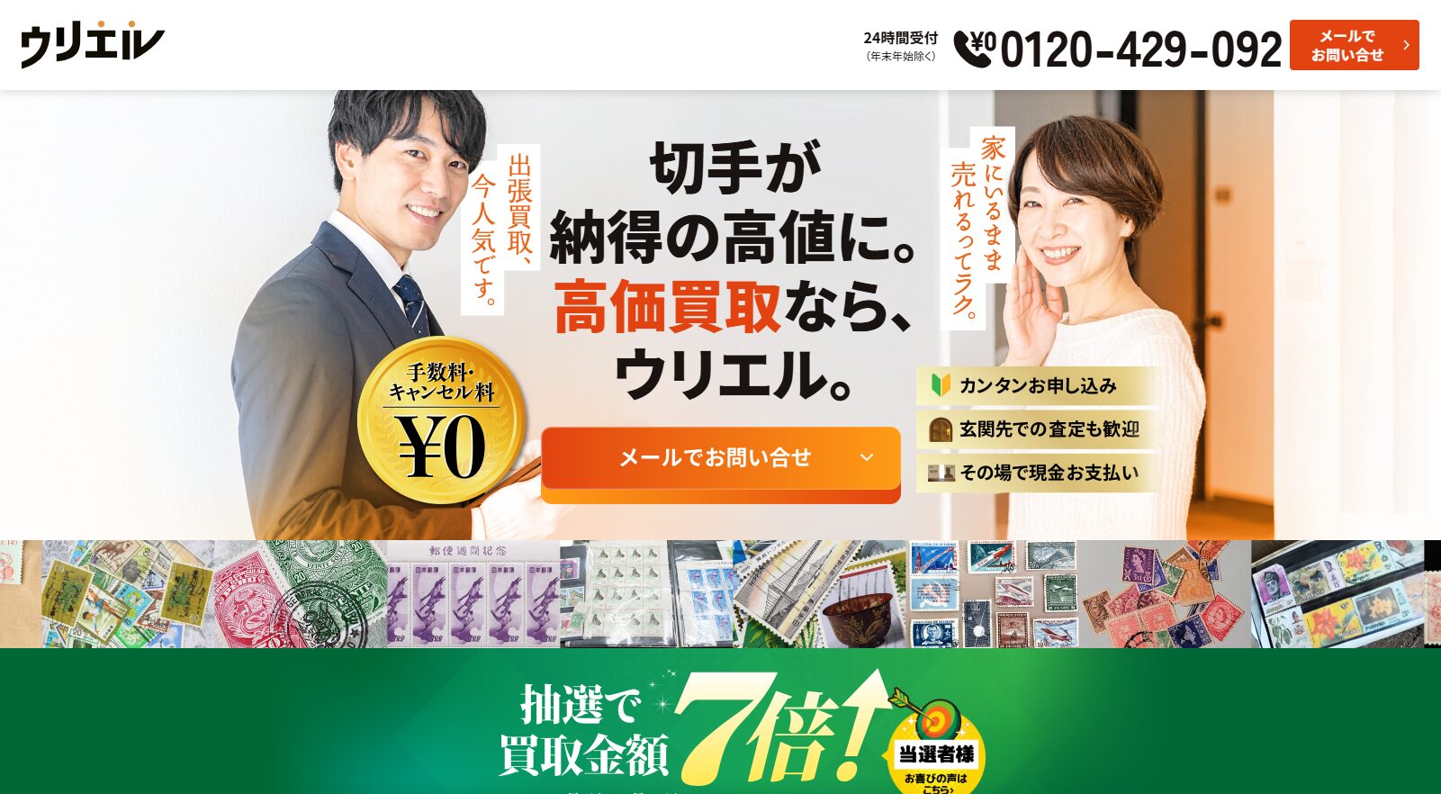 | 特徴 | 早朝・深夜も対応できる24時間電話受付体制 | 信頼と実績を持つ上場企業が運営する買取会社 | 幅広い切手の価値を正確に見極める査定体制 | 訪問時に家事も手伝う“思いやりサポート”付き | 幅広いジャンルの品目に対応できる専門性の高さ |
